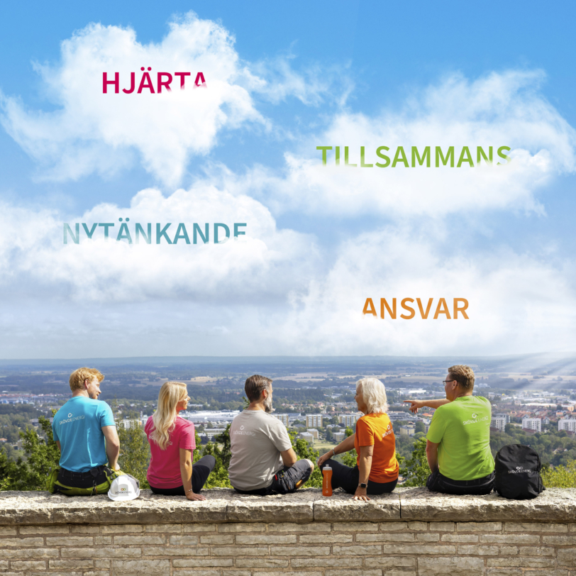 Våra värdeord beskriver vad vi står för och är rättesnören i allt vi gör. De utgör grunden för vår profil och vårt sätt att kommunicera såväl internet som med våra kunder och samarbetspartners. Våra värdeord är hjärta, tillsammans, nytänkande och ansvar.